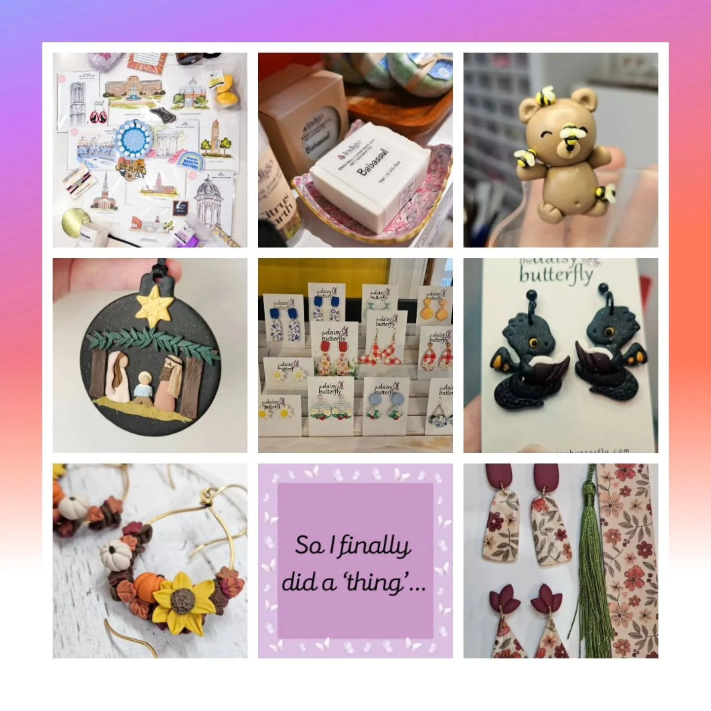 At The Daisy Butterfly, we celebrate the beauty of nature and the magic of imagination through handcrafted polymer clay art. Inspired by delicate florals, whimsical creatures, and the changing seasons, each piece is thoughtfully designed to bring joy, wonder, and a touch of enchantment into everyday life.